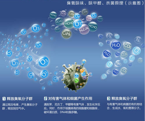 臭氧是一种较强的氧化剂,氧化性仅次于氟(F2)。臭氧的杀菌消毒作用主要与它的强氧化性和易通过微生物细胞膜扩散有关,能够氧化微生物细胞的有机物或破坏有机体链状结构而导致细胞死亡,因此,对顽强的微生物如病毒和芽孢等有强大的杀伤力。一般来说臭氧的除菌效果是氯气(Cl2)的1.5倍,杀菌速度也比氯气快600-3000倍。此外,臭氧在消毒处理后不会产生有害物质,避免了“二次污染”。